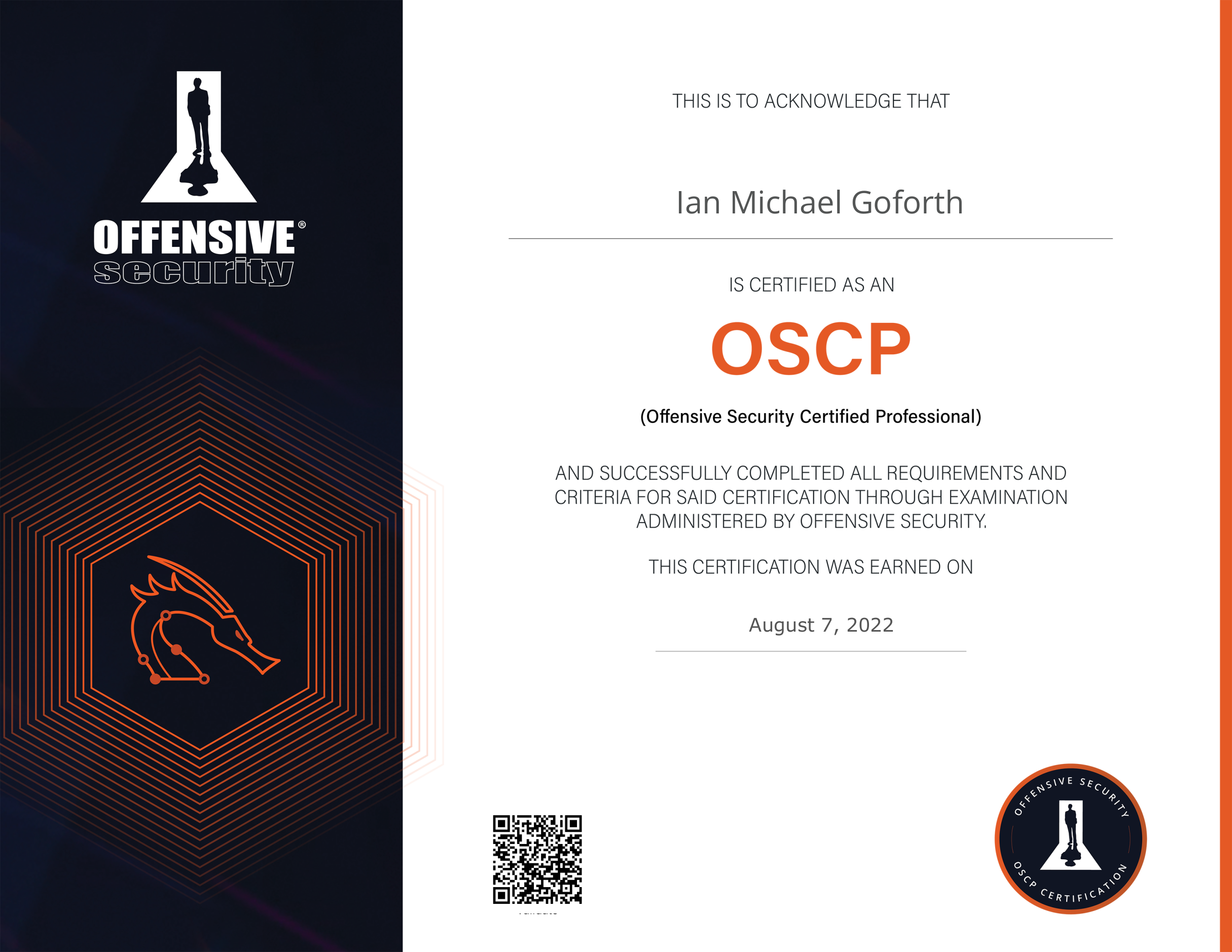 - OSCP Certification (EARNED Aug 07 2022)
